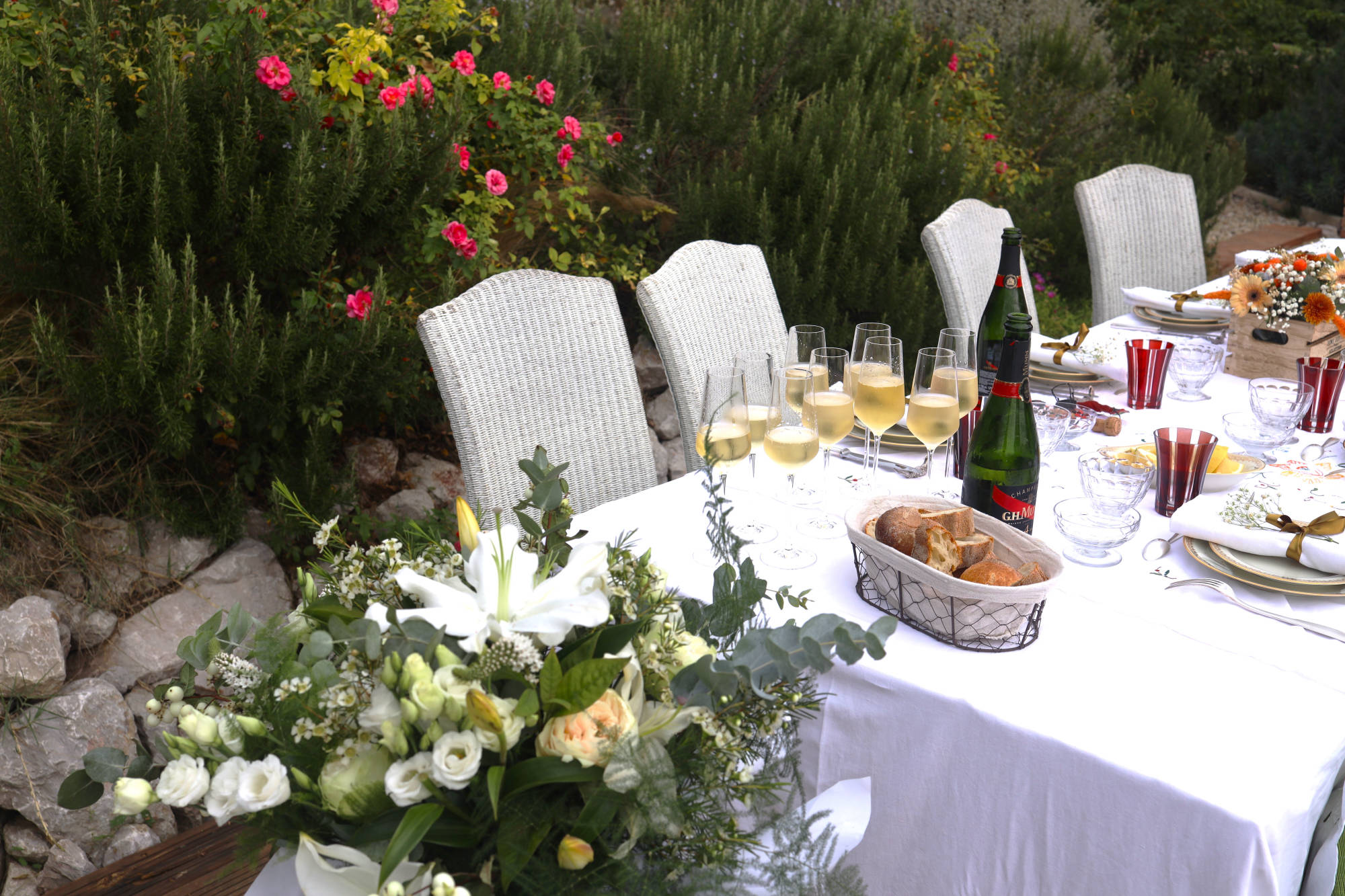 - Plusieurs terrasses dont une avec parasols et transats de bain, abritées sous la canopée d'un acacia centenaire afin de profiter du coucher de soleil, une autre avec sa pergola pour déjeuner à l’abri du soleil et de la chaleur